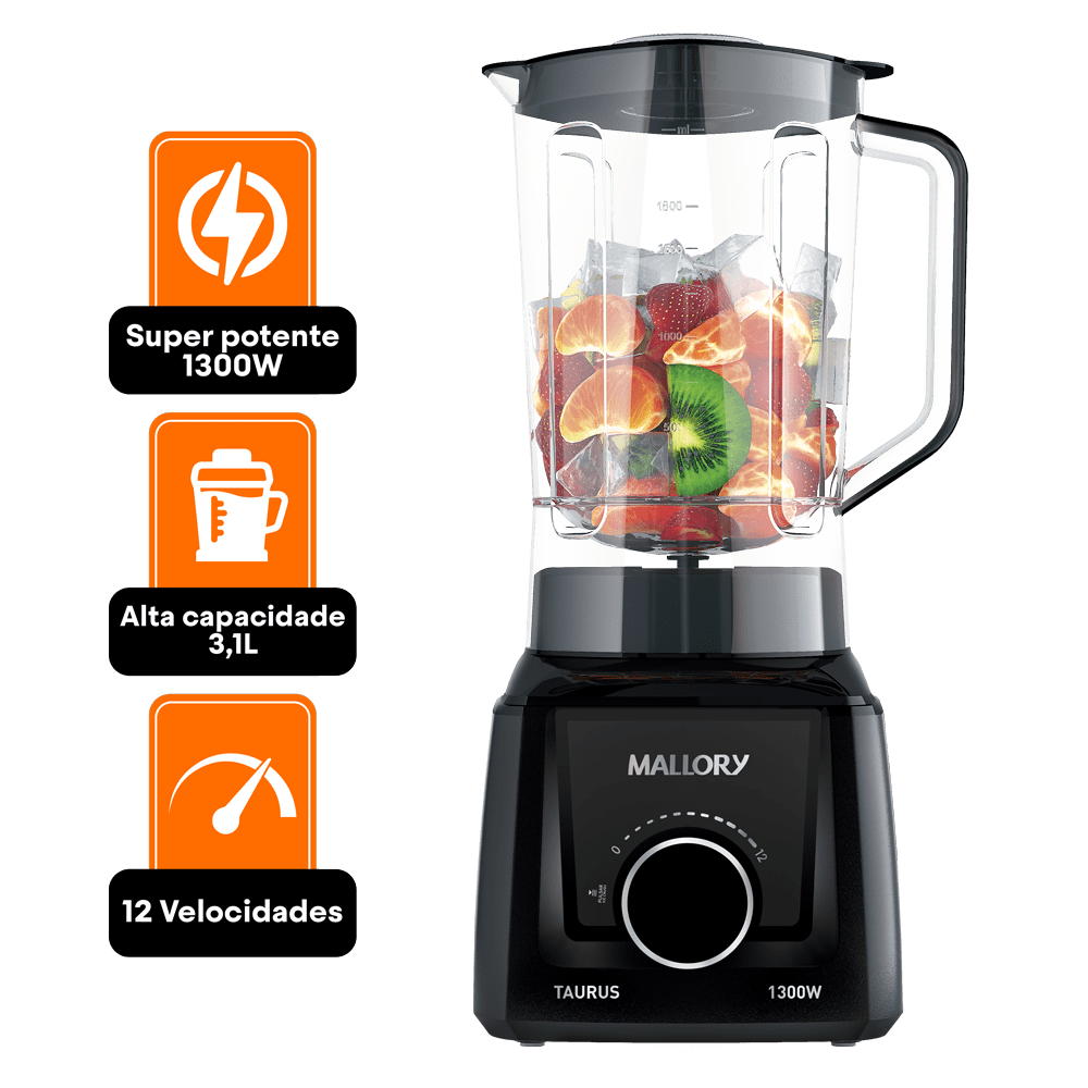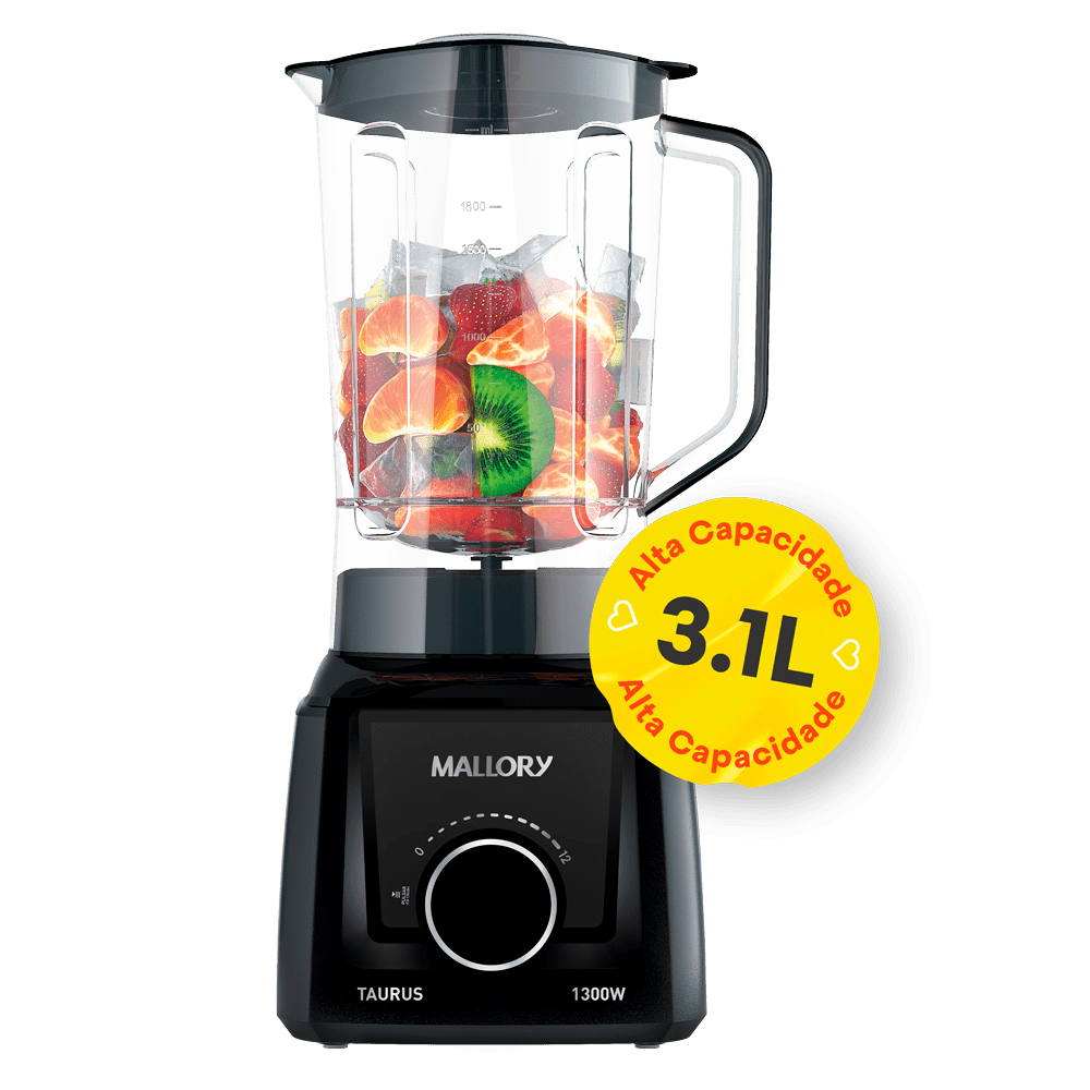 O novo Liquidificador Taurus da Mallory é sinônimo de potência, tecnologia e praticidade, oferecendo 1300W de potência para um desempenho excepcional no preparo de sucos, vitaminas, cremes e muito mais.