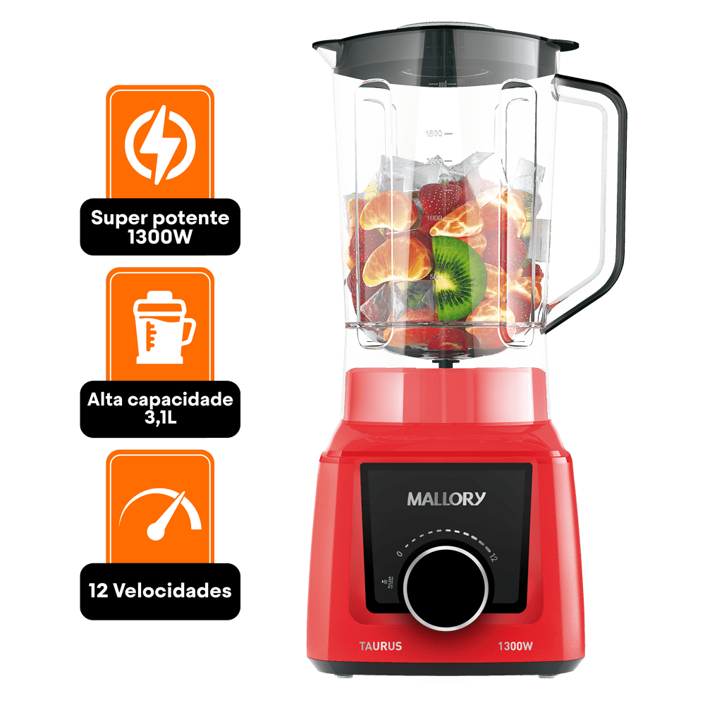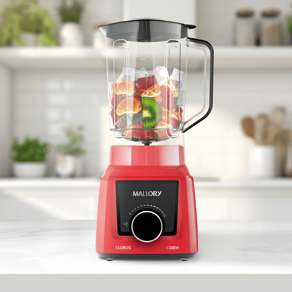 O novo Liquidificador Taurus da Mallory é sinônimo de potência, tecnologia e praticidade, oferecendo 1300W de potência para um desempenho excepcional no preparo de sucos, vitaminas, cremes e muito mais.