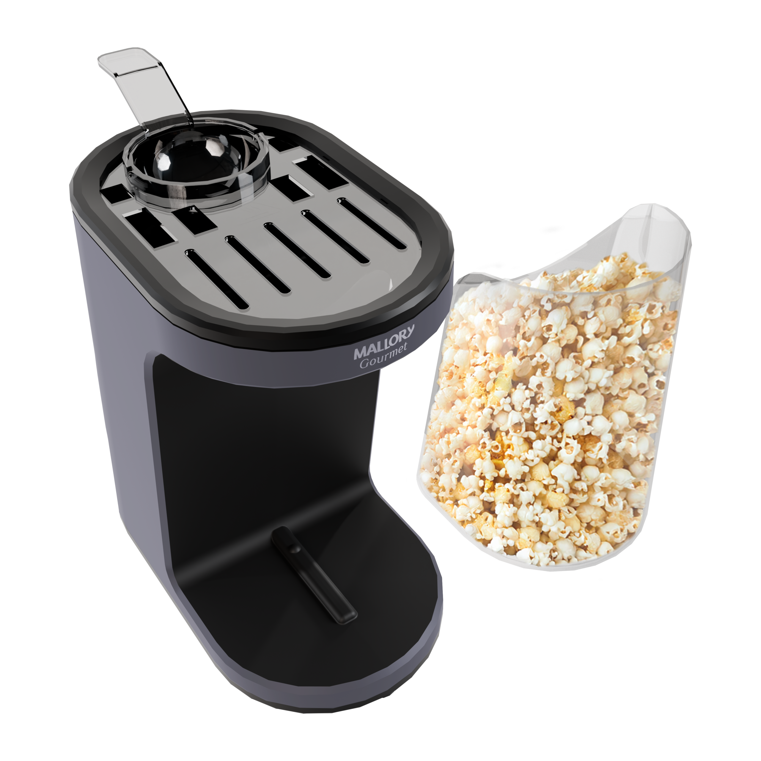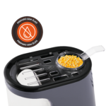 Seu design moderno e compacto combina perfeitamente com qualquer ambiente, enquanto o reservatório transparente permite acompanhar todo o processo de preparo, trazendo mais controle e praticidade no dia a dia. O sistema inteligente evita sujeira, direcionando as pipocas diretamente para a tigela, mantendo a bancada limpa e organizada.
