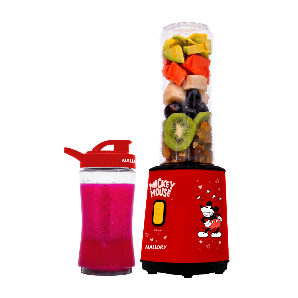 O Liquidificador Individual Mallory Mickey Mouse une charme, praticidade e desempenho em um design exclusivo inspirado no personagem icônico da Disney. Ideal para quem busca qualidade no dia a dia sem abrir mão do estilo, ele é perfeito para preparar smoothies, vitaminas, shakes, sucos e outras bebidas refrescantes com rapidez e eficiência.
