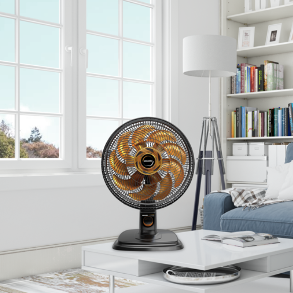 O Ventilador de Mesa Egeo Mallory é a escolha ideal para quem busca modernidade, praticidade e design sofisticado. Com potência de 140W e grade em sistema especial TS, ele proporciona grande fluxo de ar, enquanto a hélice inovadora de 15 pás garante um desempenho superior, ainda mais silencioso.